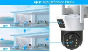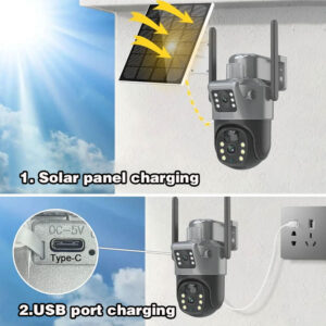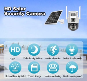 Dual Lens Wireless 4G CCTV Camera with full color night vision, motion detection, bi-directional speech, multi user sharing, remote monitoring, clound and memory crd storage options and more advanced features to protect your home or office space.